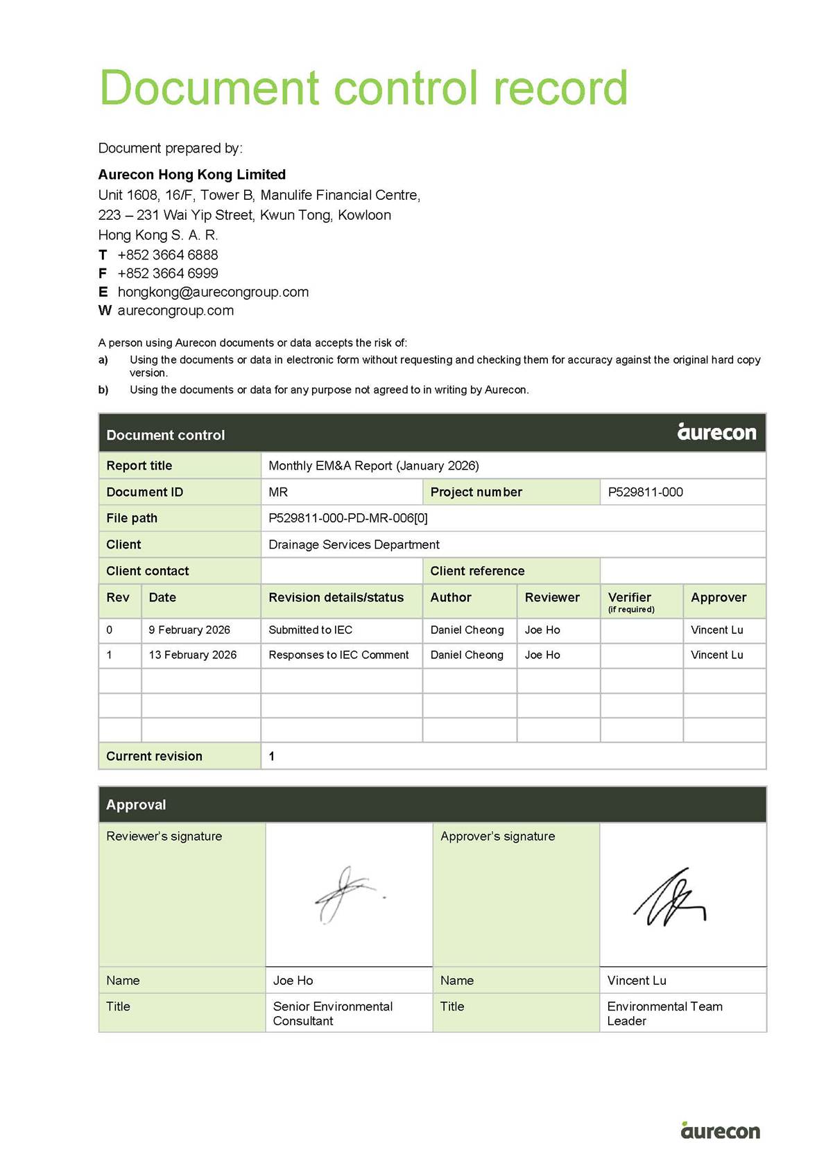 Table 1 Contact Information of Key Personnel